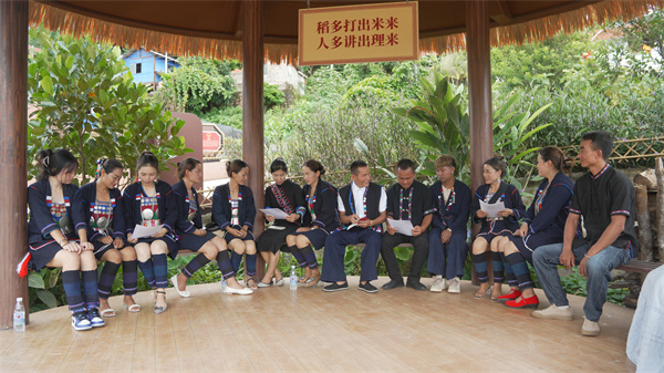 西雙版納州勐臘縣紀(jì)委監(jiān)委組織紀(jì)檢監(jiān)察干部、村務(wù)監(jiān)督委員會(huì)委員深入村(居),通過(guò)座談交流、入村宣講、走訪話家常等形式,結(jié)合具體事例,向群眾解讀黨的二十屆三中全會(huì)精神,推動(dòng)全會(huì)精神“走到”群眾“家門(mén)口”。圖為勐臘縣“清風(fēng)民語(yǔ)”宣傳小分隊(duì)向群眾開(kāi)展宣講。通訊員 陶乃旭